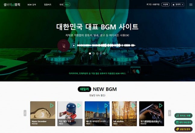 국내 유튜버들이 가장 많이 사용하는 BGM 사이트, 셀바이뮤직 작성일 2021.01.05